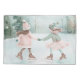 Uma cena de inverno com hortelã e cor-de-água rosa, com crianças a curtir o inverno e, claro, árvores de abeto e neve!