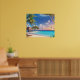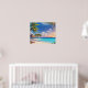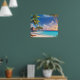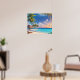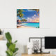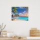 Poster é mostrado com uma impressão de arte fotográfica de uma bela cena de praia tropical oceânica. Personalize este item ou comprar como está.