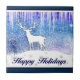 Pintura de aquarela original de Sandra Gale, com uma silhueta de cervos brancos, que se encontra em pé majestosamente entre gelo e neve. Especialmente perfeito como alternativo de um cartão de Natal, concentrando preferencialmentes, na magia da época de férias de inverno.