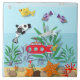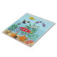 Este azulejo cerâmico colorido está cheio de vida, cheio de peixes incomuns e vida marinha, incluindo estrelas-vivas, peixes-espadilha, anêmonas-do-mar e um submarino vermelho brilhante. Adorável iluminar qualquer quarto.