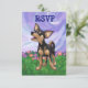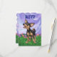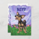 Placa RSVP de Aniversário de criança Personalizável de Chihuahua Dog RSVP de Desfile em Animal trazida para você pela Imagine isso! Design apresenta o nosso lindo Chihuahua preto e bronzeado em um pátio com um belo céu azul e roxo esticado e uma bela e tortuosa fronteira roxa e ondulada. Vocês encontrarão este canino de cabeças e caudas divertidas pintado pelo nosso talentoso ilustrador infantil, Traci Van Wagoner, em coordenar convites, cartas, favoritos para festas e muito mais. Muitas das nossas engrenagens de festa divertidas mostram ambos os lados do Chihuahua bonitinho, cabeça e bumbum, em arte colorida e divertida que trará um sorriso à face de qualquer amante de os animais, amante de Chihuahua, ou amante de um pequeno cachorro. Quem ama cachorros ficará encantado em usar esse filhote lúdico para sua divertida festa temerária. A convite, você encontrará o filhote engraçado vindo e indo com esta trabalho de arte divertida da cabeça do cachorro na frente e a engraçada cauda de Chihuahua nas costas com todas as informações personalizáveis do partido. Festa com este adorável cão preto e bronzeado! Puta!