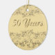 Lembre-se de um aniversário de 50 anos de casamento com este ornamento floral de ouro em forma de coração. Também funcionaria bem como uma manutenção de 50 anos. Você pode personalizar o texto no verso do ornamento para dizer o que quiser.