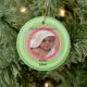 Bonito anéis de cor verde e vermelha acenam sua própria foto. Pequenos flocos de neve também! Esta design está pronta para você personalizar com uma foto favorita do primeiro Natal do seu bebê. Um guardião para sempre.