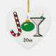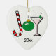 Cana-de-vela em forma de "J", ornamento verde em forma de "o" e um martini em forma de "y", soletra "Joy" na frente desse ornamento cervical. Nós temos cartões, etiquetas, papel de carta e envelopes correspondentes para este design e também temos isso disponível com um ornamento vermelho!