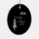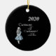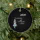 Alice, do livro infantil Alice no País das Maravilhas, olha para o ano de 2020, junto com sua citação do livro "Curiouser and curiouser, chorou Alice!" sobre um fundo negro para fazer este tema literário engraçado, olhar bem os eventos atuais, o ornamento da árvore de Natal cerâmica. O verso está pronto para você personalizar com seu próprio nome de família ou qualquer mensagem de sua escolha.