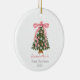 Arco cor-de-rosa Primeiro Ornamento de Fotografias personalizado de Natal . Celebre um doce marco de feriado com nosso Arco rosa Primeiro Ornamento de Fotos Personalizado de Natal! Perfeito para recém-casados, bebês ou qualquer memória de férias pela primeira vez, este adorável ornamento apresenta um design de arco rosa suave e sua foto favorita para um toque verdadeiramente pessoal. Impresso em cerâmica de alta qualidade com um acabamento brilhante, é um guardião que você vai tesourar ano após ano. Um presente adorável para casais, novos pais, ou alguém marcando um "primeiro" nesta época festiva.