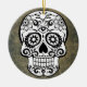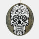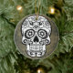 Crânio preto e branco de tendência com fundo ardente. O crânio de açúcar tem um olho na testa.