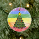 Este ornamento bonito apresenta um fundo arco-íris no estilo de uma fazenda. Na frente, uma árvore de Natal com ornamentos. No verso, personalize com seus primeiros nomes ou com o nome da família. Termine com o ano para definir a memória a tempo ou apague facilmente o ano limpando o texto quando você personalizar.