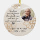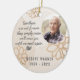 Comemore a vida de seu ente querido com este ornamento memorial personalizado com seus detalhes únicos, incluindo nome, nascimento e morte, e uma foto. O ornamento pode ser exibido durante o ano para lembrar sua vida especial!