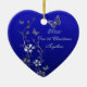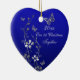 Lembre-se do seu dia especial com esta linda cerâmica floral azul real em forma de coração primeiro Natal junto com as borboletas de cinza prateada e flores nela. Você pode personalizar o texto para dizer o que quiser. ****Certifique-se de que o seu texto é colocado onde quiser e NÃO até qualquer borda, pois ele será impressão como aparece no seu monitor. Zazzle NÃO corrigirá nada. Também corresponde ao convite de casamento mostrado abaixo. Se precisar de assistência, envie um email para niteowlstudio@gmail.com.