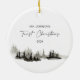 Primeiro Ornamento da Paisagem Monocromática de Inverno de Natal. Bebês Primeiro Natal em estilo moderno, com paisagem monocromática de inverno em cores preto e branco. Na moda e design elegante. Foto.