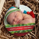 A Enfeites de natal de 1rua do Beijo Foto, Bonito, com uma fita vermelha, enfeitiçada com rendas verdes verdes e brancas. Basta adicionar suas informações de FOTO e bebês na correspondência! Perfeito para o primeiro Natal e segundo Natal. Um presente de Natal Maravilhoso que certamente será precioso por muitos anos. © Ilustrações JW