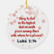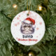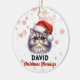 ornamento cristão personalizado, gato persa fofo com chapéu de Natal, citação bíblia atrás e fundo de neve. Luke 2:14 "Glória a Deus no mais alto, e paz na Terra entre aqueles com quem ele está satisfeito!"