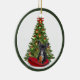 Este ornamento foi criado para o amante do cão. A design apresenta um Bulldog Francês deitado sobre um travesseiro vermelho debaixo da árvore de Natal. O filhote está esperando Papais noeis porque ele tem um biscoito de pão de gengibre para ele. Eu criei este ornamento colocando as fotografias de recorte no ornamento. É um ornamento único que você não encontrará no shopping ou em qualquer outro lugar. Comprar este ornamento para si ou dá-lo como presente para aquele especial. Há uma saudação de Natal nas costas.