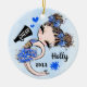Enfeite de árvore de Natal bonitinho, Na moda e giro. Cores azuis da equipe. Apresentando uma cheerleader com design de cabelo castanho e um fundo azul-aquarela. Mais cores de equipe, assim como cabelo e cores de pele disponíveis no meu compro. Personalize com seu nome e ano. Dons de excelente e guardar para Cheerleaderes, Equipes de Animação e Treinadores.