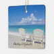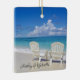 Uma cena da praia com as duas cadeiras de Adirondack na areia com as ondas de oceano que deixam de funcionar acima. Personalize adicionando seus nomes.