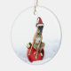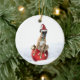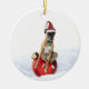 Um ornamento cerâmico com fotografia de um boxeador de Brindle num chapéu de Santa