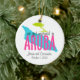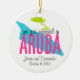 Cores das caraíbas do divertimento! Ornamento perfeito da lembrança do casamento com o mapa de Aruba e a árvore famosa do divi do divi. Personalize com seus nomes e data do casamento!