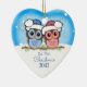 Cerâmica Casal Cutie Owl Primeiro Ornamento de Natal