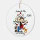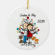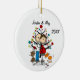Um adorável ornamento cerâmico divertido, com um casal esperado de figura de palitos, dois gatos, árvore de férias e texto que diz "Estamos esperando!" com uma área que você pode adicionar seus nomes ou sobrenome e adicionar o ano atual!