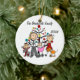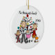 Um ornamento cerâmico redondo bonito do feriado do Natal da lembrança caracteriza uma figura casal da vara, filha do bebê na carruagem cor-de-rosa, e filha nova da criança assim como dois gatos na frente de uma árvore de Natal decorada com áreas que você pode personalizar com seu nome de família e o ano em curso! Este ornamento bonito da lembrança do feriado faz um grande presente para que a família nova comemore um ano especial!