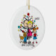 Um casal esperançoso, um rapaz, um cão, uma árvore de férias e um texto que diz "Estamos à espera!" num ornamento bonito que se pode namorar com o ano em curso!