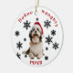 Este adorável ornamento de cão Havanês captura o espírito brincalhão dos feriados! Apresentando um cachorro Havanês bonito vestindo um chapéu de Papai Noel, o ornamento é adorado com delicados flocos negros de neve espalhados por um fundo branco e nítido. A frase festiva "Definir travesso" está escrita em negrito vermelho, acrescentando um toque atrevido. Perfeito para amantes de cães, este ornamento traz charme e humor a qualquer árvore de Natal enquanto mostra um querido Havanês. Ideal para doar ou decorar, é uma maneira deliciosa de celebrar o feriado com seu amigo peludo. Frente e traseira personalizáveis.