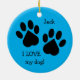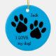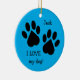 Pata dupla em 'Eu amo meu cão', personalizável ornamento. Personalize ambos os lados do ornamento.