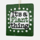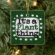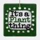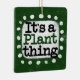 "É Uma Coisa de Plantas" é um design de texto bonito em verde com texto preto e vermelho, junto com uma forma de sotaque branco e pontos brancos texturizados ao seu redor.