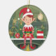 Cerâmica Elf sobre o Ornamento da Árvore de Natal na pratel