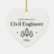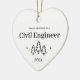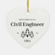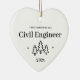 Primeiro Natal como um ornamento de coração de engenheiro civil para um novo emprego. Os ornamentos eletrizantes de porcelana, de férias, em branco, com letra preta. Apresentando árvores e estrelas de Natal.