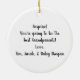 Anuncie sua gravidez de uma maneira divertida com este Enfeites de natal! Personalize o adorno com um sobrenome, o bebê de mês e de ano vence. Adicione uma nota especial na parte de trás do ornamento ao seu destinatário!