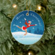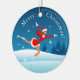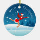 A frente deste ornamento cerâmico mostra uma bela figura de menina patinando na pista do parque. A moça veste uma fantasia e um chapéu de Papai noel. A parte de trás do ornamento tem a Árvore de Natal decorada com luzes vermelhas e amarelas. Ambos os lados têm uma inscrição personalizável "Feliz Natal!". Se precisar de ajuda para transferir este design para outro produto, não hesite em contactar-me através do Zazzle. Tenha um dia de excelente!