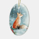 Este design apresenta uma ilustração da floresta de inverno - pinheiros, cabana de tronco e raposa cobertas de neve
