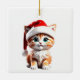 Cerâmica Gato Bonito com Ornamento de Chapéu de Natal
