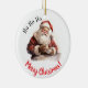 Decorre sua árvore ou dê um presente especial nesta temporada de festas com este Papai Noel com o texto Ho Ho Ho Felry Natal! ornamento cerâmico de natal design. Personalize com sua foto e texto.
