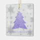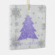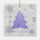 Decorre sua árvore neste feriado com uma Lavanda de Enfeites de natal de cerâmica de Árvore de Natal Festiva. Design de ornamento apresenta uma vibrante e festiva árvore de Natal enfeitada com cinzas em queda e flocos de neve brancos com um cartões de natal. Itens adicionais de presentes e feriados disponíveis com este design também.