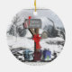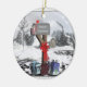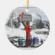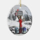 Uma bela caixa de correio e presentes para o carteiro, ornamento cerâmico de dois lados. Este clássico cartão de feriado apresenta uma cena tradicional de inverno com uma caixa de correio decorada em feriado com presentes em um fundo de inverno de neve. Uma alegre arte digital de ornamento de decoração de feriado pela XG Design NYC. Um presente de excelente para amigos, família ou um porta-correio especial, carteiro ou mulher de correio! Para mais cartões de natal e presentes profissionais, por favor visite nosso compro!
