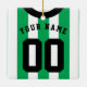 Fácil de editar futebol / futebol / rugby / decoração e ornamento de festas de camisa esportiva, basta usar as caixas à direita da imagem para inserir seu nome e número. Este design de camisa tem faixas verdes verticais com colarinho e botões. Você pode adicionar seu próprio logotipo ou texto à frente, basta clicar em 'PERSONALIZAR'. A cor de fundo também pode ser alterada. Se você quiser um design personalizado feito em um esquema de cores específico, entre em contato comigo usando o link 'Contate este Designer' abaixo. Ornamentos únicos, personalizados, personalizados, perfeitos para qualquer feriado ou celebração, seja Natal, aniversário, Chanucá, casamento e muitas outras ocasiões! Ideias de presentes de excelente para o fã ou jogador esportivo em sua vida.