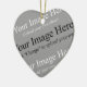 Um modelo de ornamento com opção de imagem personalizada. Carregue sua própria foto neste ornamento para criar uma manutenção duradoura. Clique em Personalizar para alterar as cores de fundo ou para adicionar texto frontal ou traseiro!