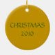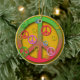 Colorido, multi bonitos - design do sinal de paz em um Natal ou em um ornamento do feriado. No reverso, o texto (lê atualmente o Natal 2010) é customizável. Você pode adicionar um nome, uma data, um provérbio, ou qualquer coisa que você gosta. Os ornamento personalizados fazem presentes inesquecíveis. Este ornamento do feriado é feito de cerâmico, é bastante grande (2,87 polegadas no diâmetro), e pendura de um cabo do ouro (incluído). Aperfeiçoe para árvores de Natal, para decorar pacotes, 100 outro usos!
