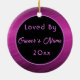 Este maravilhoso ornamento de dois lados fará o presente perfeito para qualquer um que seja dono de um cavalo ou outros animais de estimação. Uma foto do seu cavalo ou animal de estimação pode ser facilmente carregada na frente do ornamento junto com o nome dele. Na parte de trás está um doce sentimento com o nome do dono e também com o ano. Este ornamento fará a manutenção perfeita, monótona que será tesourada por anos vindouros.