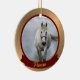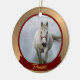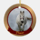 Este maravilhoso ornamento de dois lados fará o presente perfeito para qualquer um que seja dono de um cavalo ou outros animais de estimação. Uma foto do seu cavalo ou animal de estimação pode ser facilmente carregada na frente do ornamento junto com o nome dele. Na parte de trás está um doce sentimento com o nome do dono e também com o ano. Este ornamento fará a manutenção perfeita, monótona que será tesourada por anos vindouros.