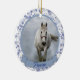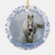 Este maravilhoso ornamento de dois lados fará o presente perfeito para qualquer um que seja dono de um cavalo ou outros animais de estimação. Uma foto do seu cavalo ou animal de estimação pode ser facilmente carregada na frente do ornamento junto com o nome dele. Na parte de trás está um doce sentimento com o nome do dono e também com o ano. Este ornamento fará a manutenção perfeita, monótona que será tesourada por anos vindouros.