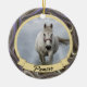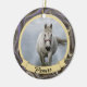 Este maravilhoso ornamento de dois lados fará o presente perfeito para qualquer um que seja dono de um cavalo ou outros animais de estimação. Uma foto do seu cavalo ou animal de estimação pode ser facilmente carregada na frente do ornamento junto com o nome dele. Na parte de trás está um doce sentimento com o nome do dono e também com o ano. Este ornamento fará a manutenção perfeita, monótona que será tesourada por anos vindouros.