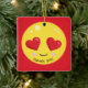 Junte-se à mania do emoji! Personalize este ornamento com seu nome ou dê-o como um presente. Tem um fundo vermelho brilhante lá é um emoji grande com coração grande os olhos dados forma que enviam o amor para fora. Personalize com um nome e um ano. Verifique para fora os muitos outros ornamento que do emoji nós oferecemos em nossa loja.