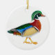 O design original das belas artes de um pato de madeira masculino pelo artista Carolyn McFann do estúdio de ronrom de dois gatos em um ornamento do feriado da qualidade para o pássaro selvagem ventila.