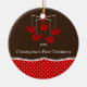 O Primeiro Ornamento de Natal do bebê apresenta o mais doce conjunto móvel de elefantes azuis em um fundo castanho e vermelho. A parte de trás do ornamento está pronta para você adicionar a informação de nascimento do seu bebê. Personalize com sua informação e data do bebê e você está pronto para ir! Um maravilhoso presente de guardiã para o natal de 1rua do seu bebê. ©Cocoa Studio