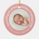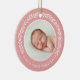 Crie um especial de manutenção para o primeiro Natal do bebê com este ornamento de foto na moda em cor de pêssego claro e branco! Modelos de texto no verso para nome e ano.