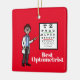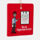 Este é um presente divertido para o oftalmologista masculino que você conhece. Você pode alterar e personalizar este texto na frente e atrás, conforme desejar. Devido ao estilo, você só pode comprar este design nos ornamentos SQUARE. Faz um presente de excelente para aniversário, Dia de os pais, Natal ou Dia Mundial da Optometria, anualmente no dia 23 de março. Desenhado por Sheila Cicchi, Brownielocks.com. Todos os Direitos Reservados.